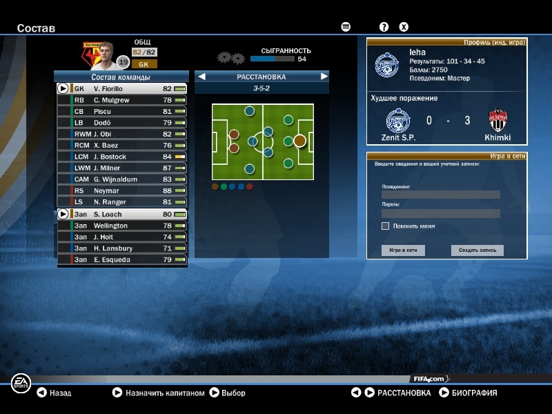 | Вот мой обнавлёный состав после трансферов + 2 молодых перспективных игрока в аренде